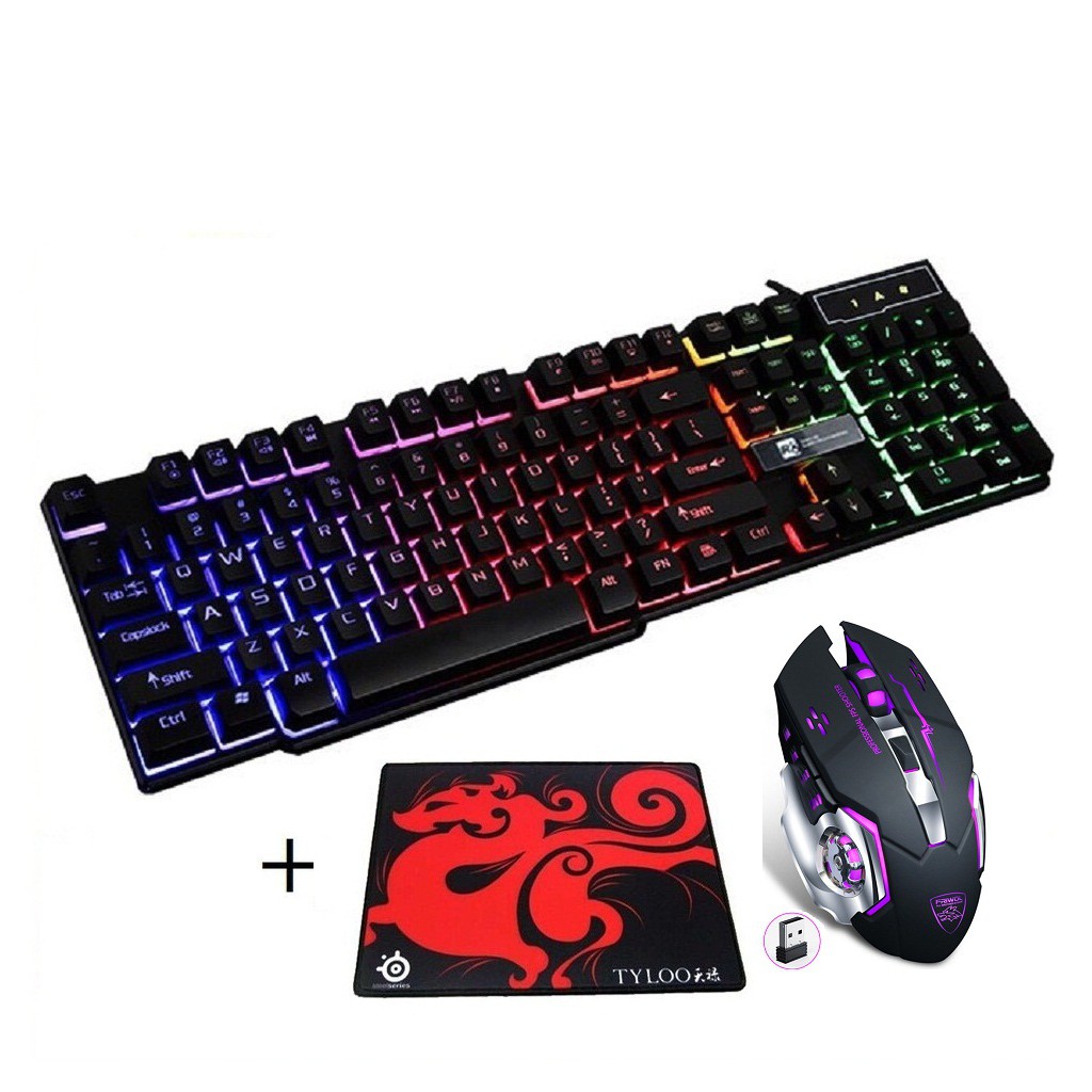 Bàn Phím LED Giả Cơ R8-1822 Và Chuột Không Dây Pin Sạc FriWol C90 + Tặng Kèm Lót Chuột