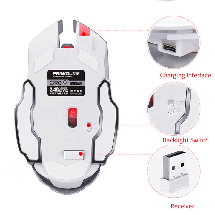 * Chuột Chuyên Game Pin Sạc FriWol C90 *