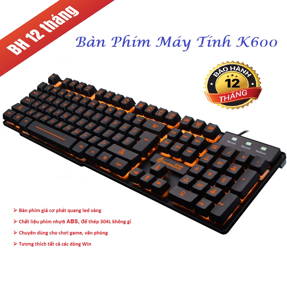 Bàn Phím Led K600 Thế Hệ Mới Bảo Hành Lâu Dài. Bàn Phím Giả Cơ Tích Hợp Đèn Led