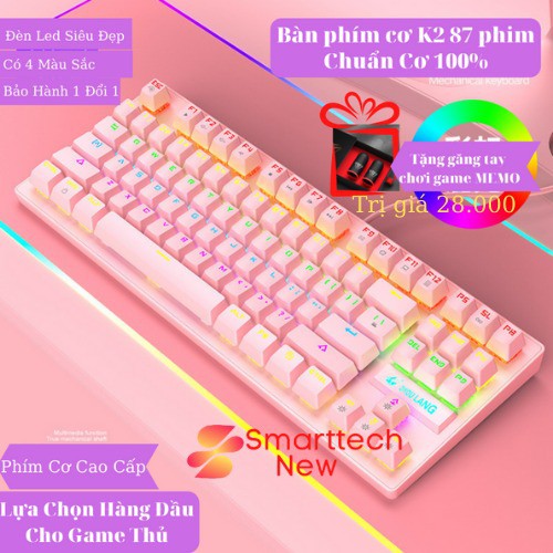 - Bàn Phím gaming có 4 màu sắc thời trang và trẻ trung, tuyệt đẹp và Charming. 87 phím tiêu chuẩn, ký tự và ánh sáng mát mẻ giữa bảng.
