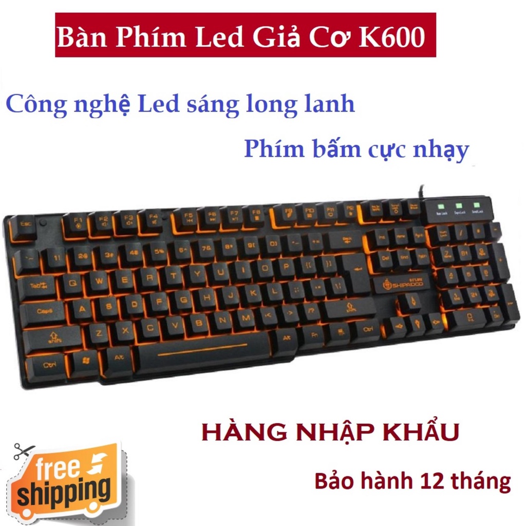 Bàn Phím Máy Tính Có Dây K600 Thiết Kế Giả Cơ Tích Hợp Đèn Led Vàng Đẹp Sử Dụng Dễ Dàng Nơi Thiếu Ánh Sáng*Thông tin sản phẩm: