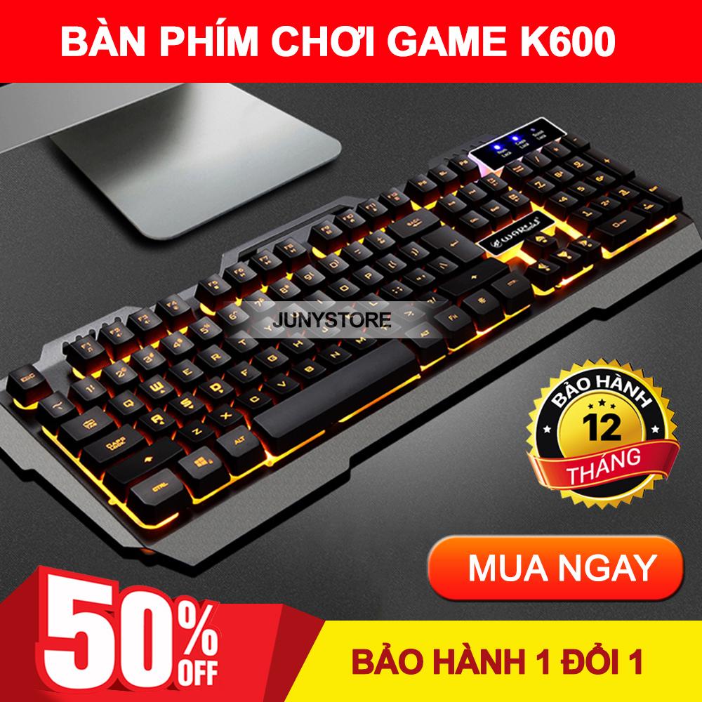Bàn Phím Máy Tính Có Dây K600 Thiết Kế Giả Cơ Tích Hợp Đèn Led Vàng Đẹp Sử Dụng Dễ Dàng Nơi Thiếu Ánh Sáng
