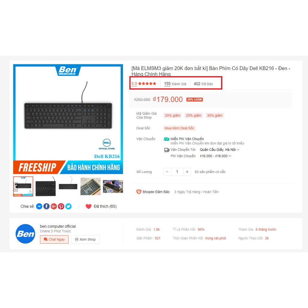 Bàn phím máy tính dell KB216 Có Dây Cho Máy Tính, Latop Chính Hãng BH 12T