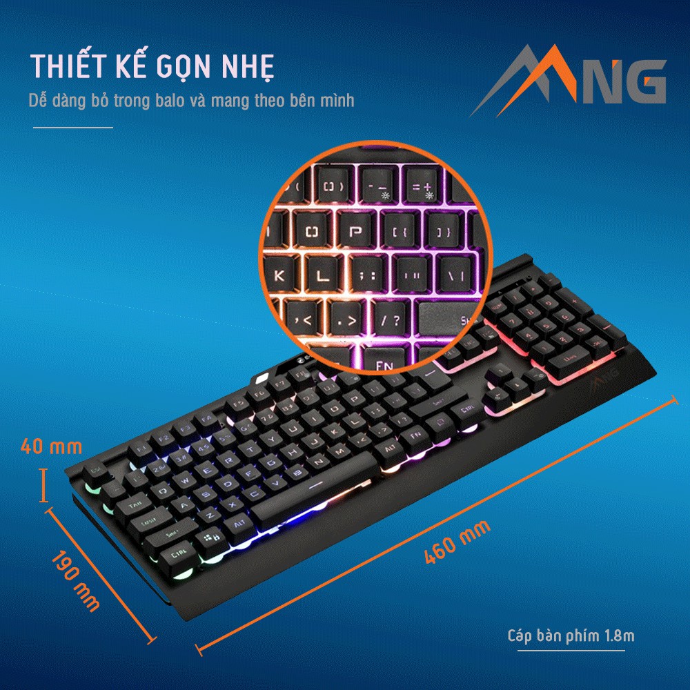 - Cáp bàn phím dài: 1.8m bọc dù.