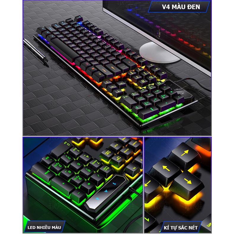 Bàn phím máy tính gaming có dây V4 siêu bền gọn nhẹ phù hợp văn phòng và chơi game