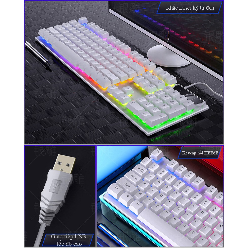 Tên Sản Phẩm: Bàn Phím Máy Tính Gaming Giả Cơ Độ Chơi Game Đạt Nhạy Cao Chống Nước Có Đèn Led Nền Siêu Chất Đạt Tiêu Chuẩn ESPORTS🍀 Bàn phím cho âm thanh gõ giống như Đoạn Văn hay cảm giác cơ học, loại thân công tắc thoải mái và dễ sử dụng hơn. Âm thanh của nó sắc nét và có nhịp gõ mạnh mẽ. Nó chủ yếu phù hợp để đánh máy trong các trò chơi.