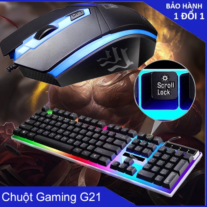 Bàn Phím Máy Tính Giả Cơ G21 Đèn LED 7 Màu Tặng Kèm Chuột - Bàn Phím Gaming Chuyên Game Siêu Bền - Bảo Hành 12 Tháng