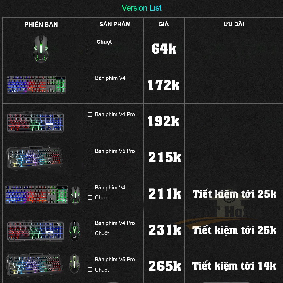 Bàn Phím Máy Tính V4-V5 Pro, Bộ Bàn Phím Chuột LDK V4-V5 Pro Có Dây / Đèn LED Gaming / Thiết Kế Chất Liệu ABS Cao Cấp****************