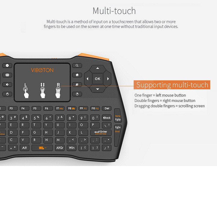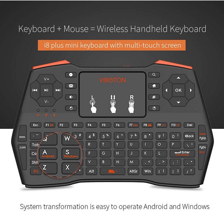 Bàn Phím Mini Không Dây Cho TV Box, Android Box VIBOTON i8 Plus1. The updated version of i8 plus mini keyboard on functions and more humanized design on appearance