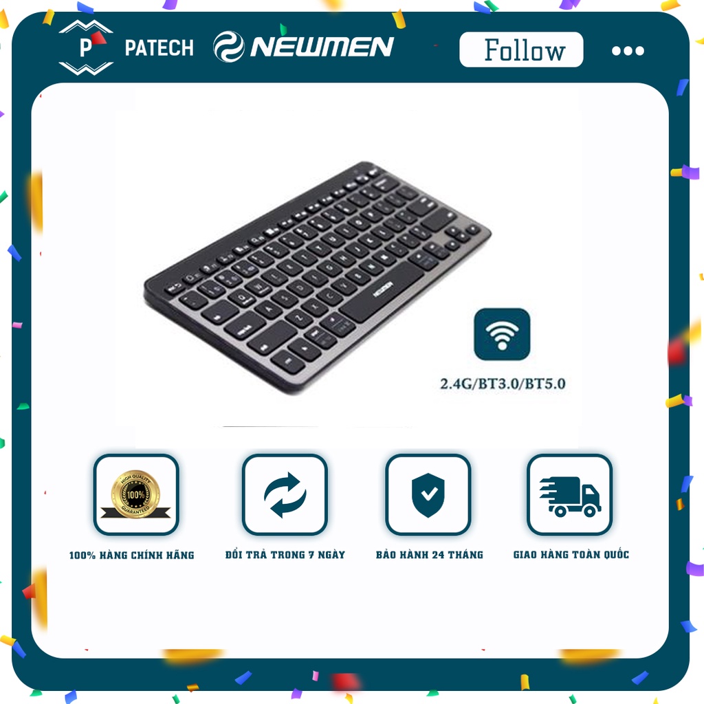 Bàn phím mini không dây Newmen BT713 2 chế độ kết nối (2.4Ghz/Bluetooth 5.0),mỏng, nhỏ, nhẹ thuận tiện mang theo