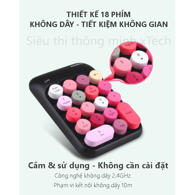 CHỨC NĂNG NỔI BẬT- Bàn phím số không dây chính hãng MOFii X910 được thiết kế tinh tế với nút bấm tròn cổ điển.