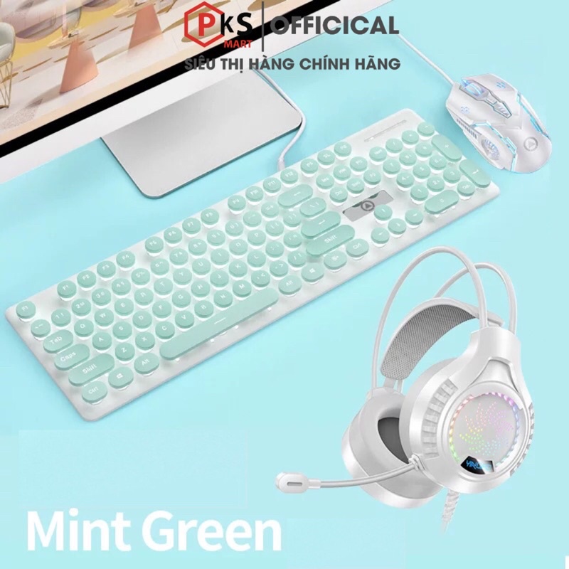 Bàn Phím V8 Và Chuột G5 Tai Nghe Chụp Tai Q7 Gaming YINOIAO Nút Tròn Đèn LED Xuyên Chữ Có 3 Màu Xanh, Hồng, Đen
