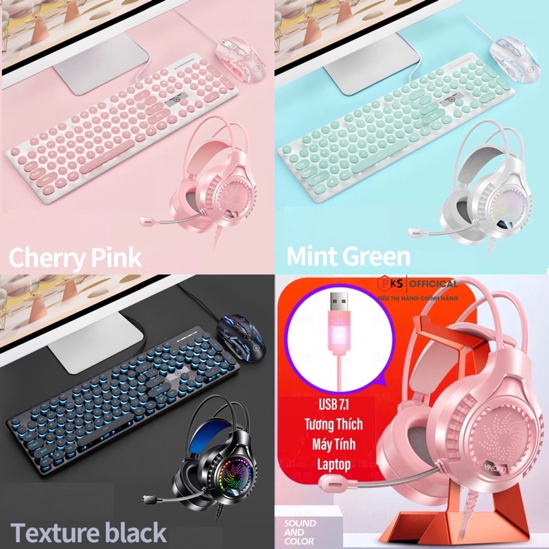 Giới thiệu Bàn Phím V8 Và Chuột G5 Tai Nghe Chụp Tai Q7 Gaming YINOIAO Nút Tròn Đèn LED Xuyên Chữ Có 3 Màu Xanh, Hồng, Đen