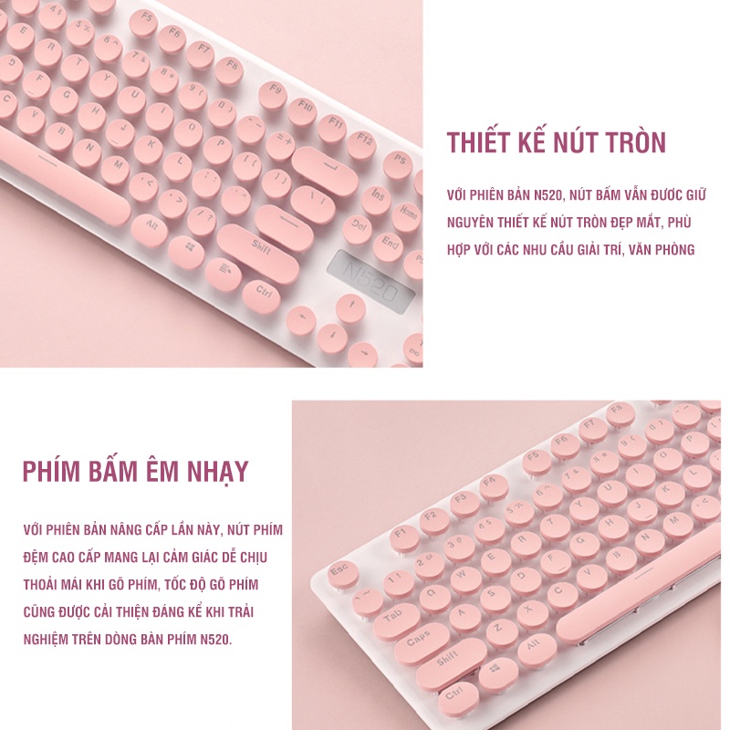 Bộ bàn phím và chuột Bluetooth không dây N520 siêu nhạy chuột chỉnh các mức DPI màu sắc đa dạng kết nối qua chip USB