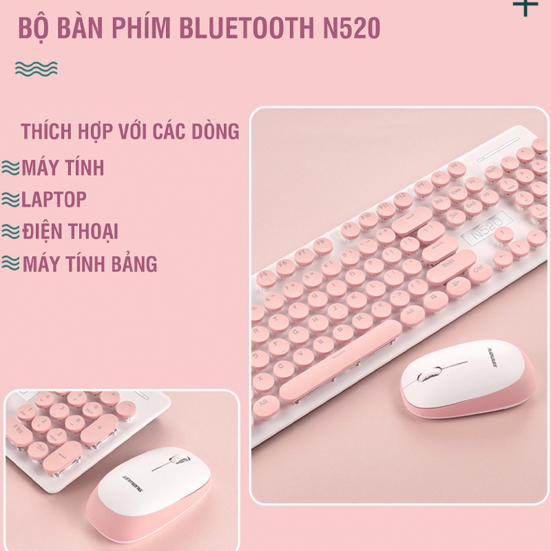 Bộ bàn phím và chuột Bluetooth không dây N520 siêu nhạy chuột chỉnh các mức DPI màu sắc đa dạng