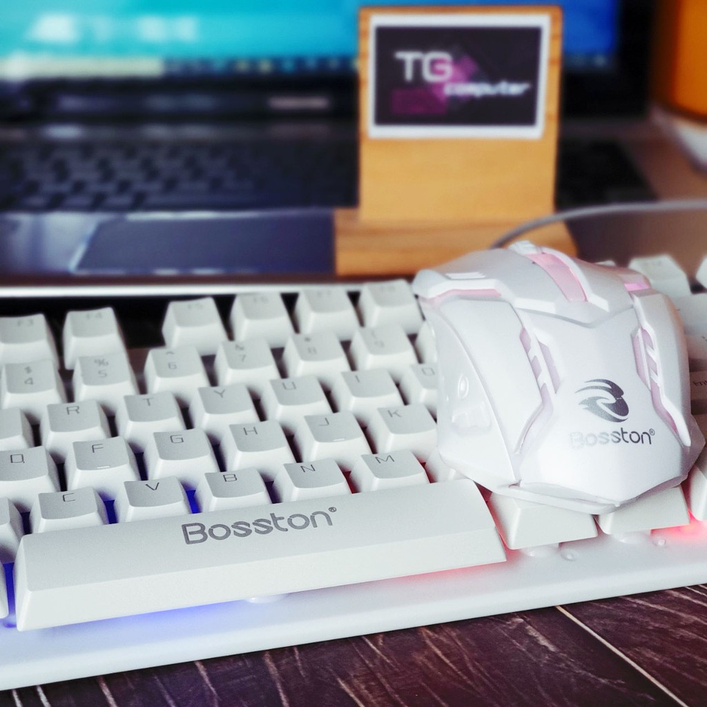Bộ bàn phím và chuột giả cơ Bosston 8310 Đèn LED màu trắng giá rẻ tặng kèm lót gaming - Vi tính TG CB8310