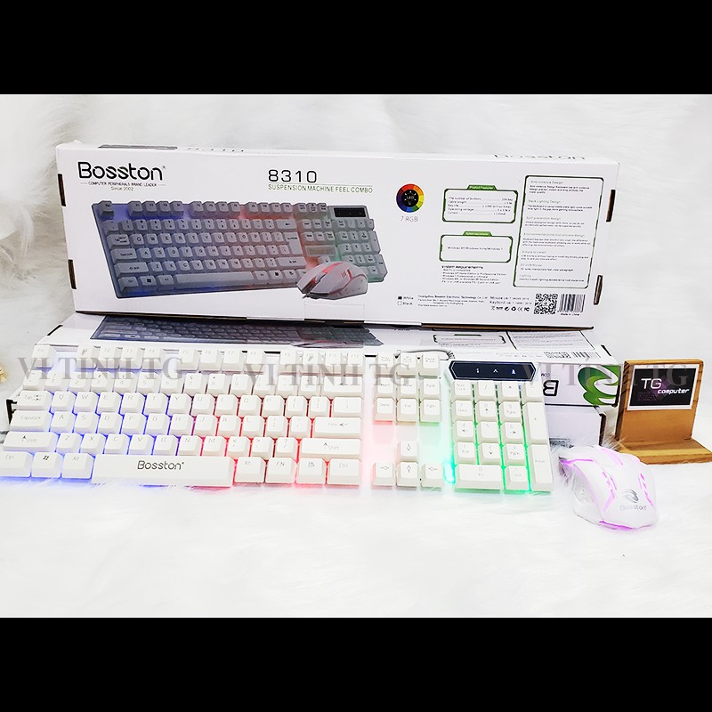 Máy tính & Laptop > Chuột & Bàn Phím > Bàn Phím Máy Tính || Bộ bàn phím và chuột giả cơ Bosston 8310 Đèn LED màu trắng giá rẻ tặng kèm lót gaming - Vi tính TG CB8310Còn hàng