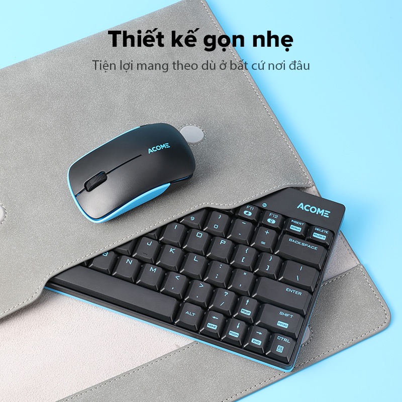 Bộ Bàn Phím Và Chuột Không Dây Nhỏ Gọn ACOME AKM2000 2.4GHz Độ Phân Giải 1600DPI Tặng Kèm Pin