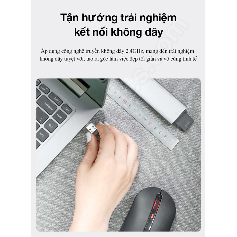 - Phương thức kết nối: RF 2.4GHz tiên tiến cho phạm vi hoạt động lên tới 10m (không có rào cản).