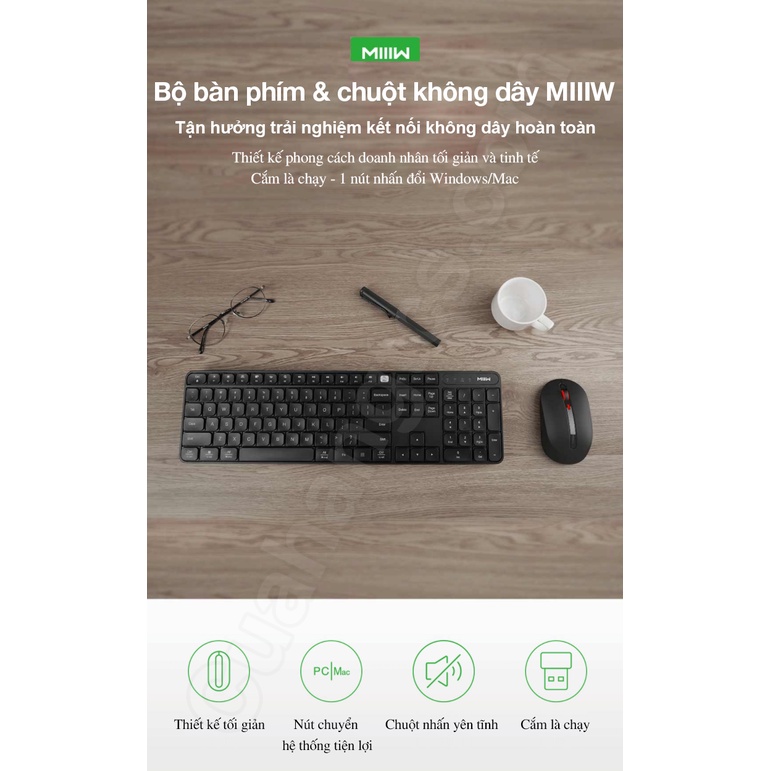 Bộ bàn phím và chuột không dây MIIIW MWWC01 Silent version