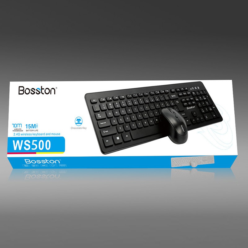 Máy tính & Laptop > Chuột & Bàn Phím > Bàn Phím Máy Tính || Bộ bàn phím và chuột không dây wireless Bosston WS500-phím bấm cực êmCòn hàng