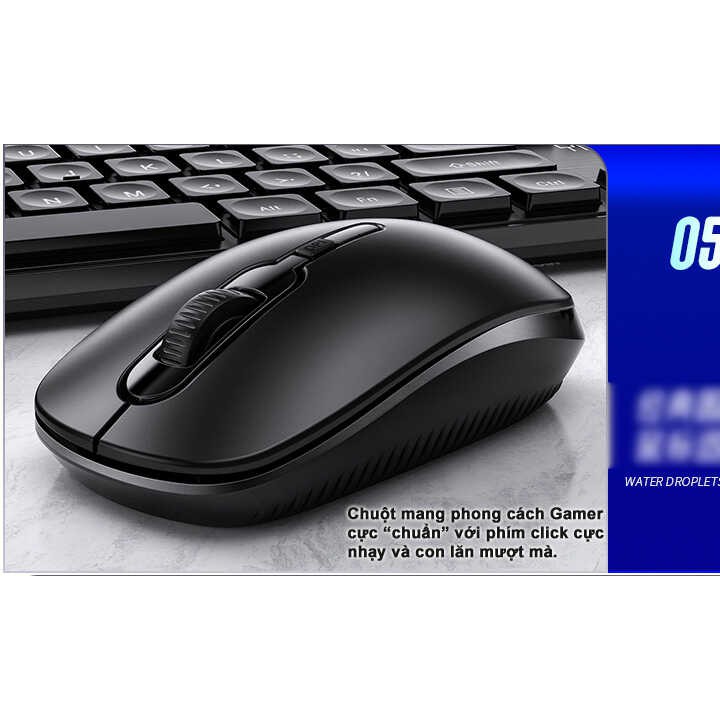Thiết kế chuẩn đáp ứng nhu cầu chung Giống như một số sản phẩm cùng dòng, bộ thiết bị này cũng được trang bị một số tính năng nổi bật như độ phân giải 1600DPI, tự động điều chỉnh kênh thu sóng, tránh nhiễu, phạm vi hoạt động 10m. Chuột di nhanh và nhạy trên cả bề mặt Sơn bóng, Gạch men, giấy phủ Nilon bóng. Thiét kế kiểu dáng game thủ, văn phòng ,cầm vừa tay.