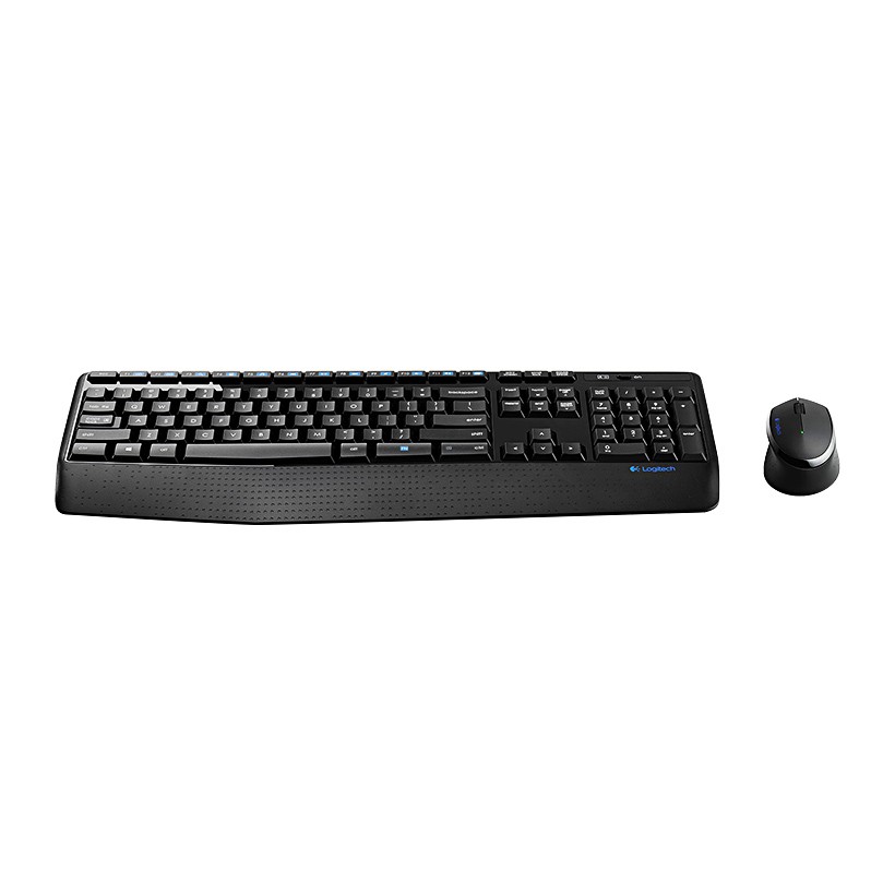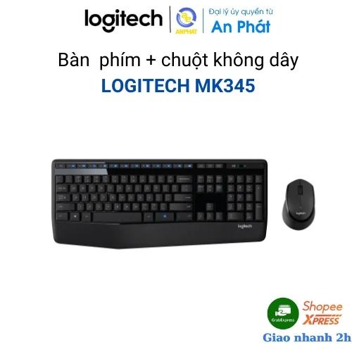 Thông tin sản phẩm.. Bộ bàn phím và chuột không dây Logitech MK345 (Đen)..Thiết kế nhỏ gọn, đẹp mắtBộ bàn phím và chuột không dây Logitech MK345 được thiết kế nhỏ gọn, có các góc cạnh bo tròn mềm mại. Bên cạnh đó, bàn phím còn được thiết kế chắc chắn với khả năng chống tràn nước, phím bấm êm ái và khoảng cách phím hợp lý. Chuột được thiết kế cân đối, vừa tay cầm, nút rê chuột mượt mà, chuột có thể di chuyển trên tất cả bề mặt mà không gặp bất kì trở ngại nào....