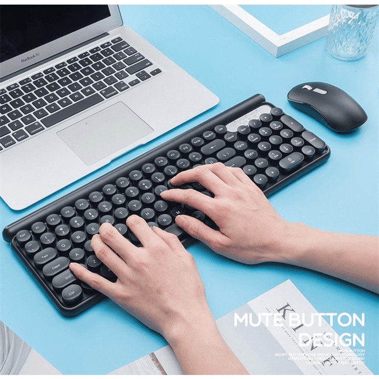 Bộ bàn phím và chuột không dây Wireless LangTu LT400 phím tròn, bấm silent (Đen) - Nhất Tín Computer
