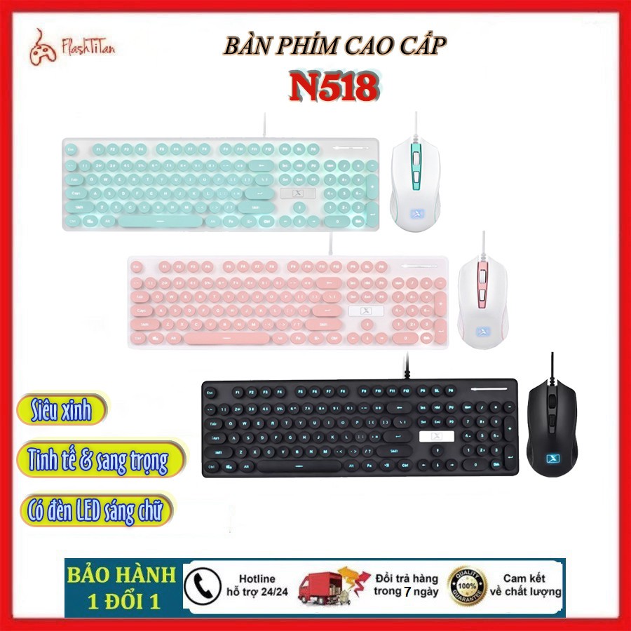 Bộ Bàn Phím Và Chuột Máy tính Cao Cấp N518 Có Đèn Led Sáng Chữ, Bàn phím máy tính Siêu Chuẩn, Thiết kế dễ thương