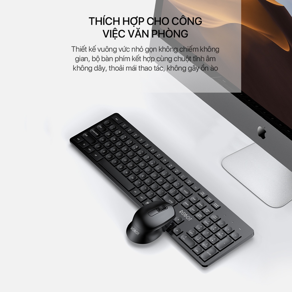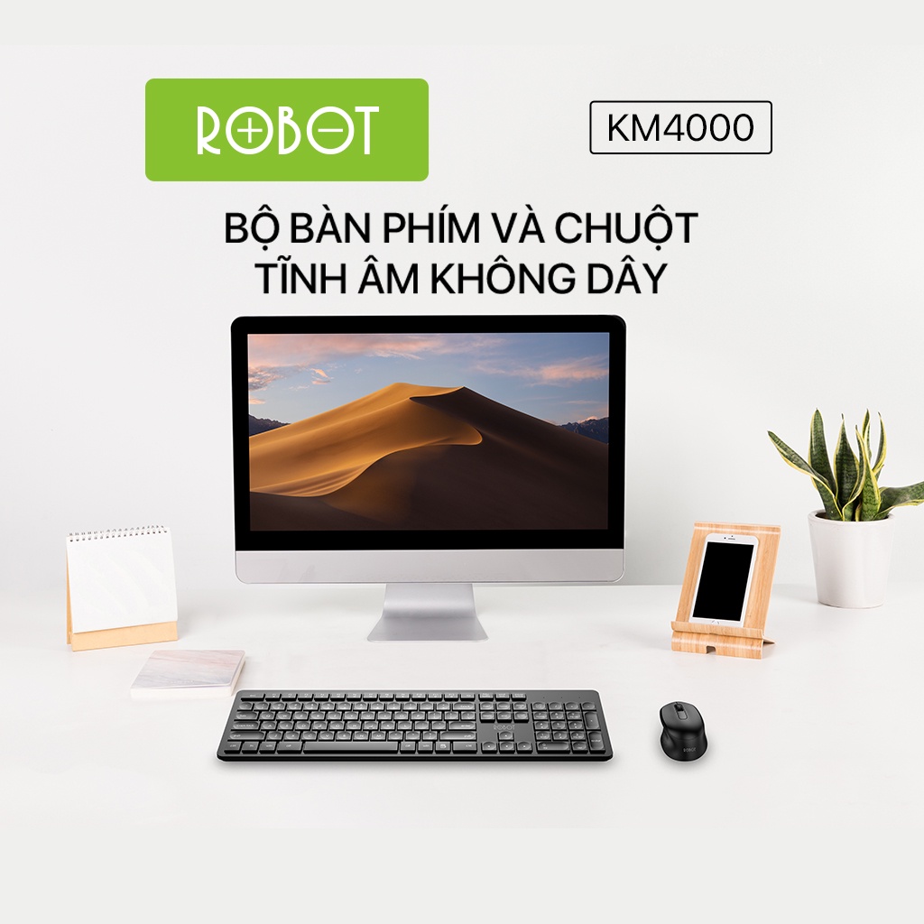 Bộ Bàn Phím Và Chuột Tĩnh Âm Không Dây ROBOT KM4000 2.4GHz Độ Phân Giải 1600DPI Hàng Chính Hãng Bảo Hành 12 Tháng