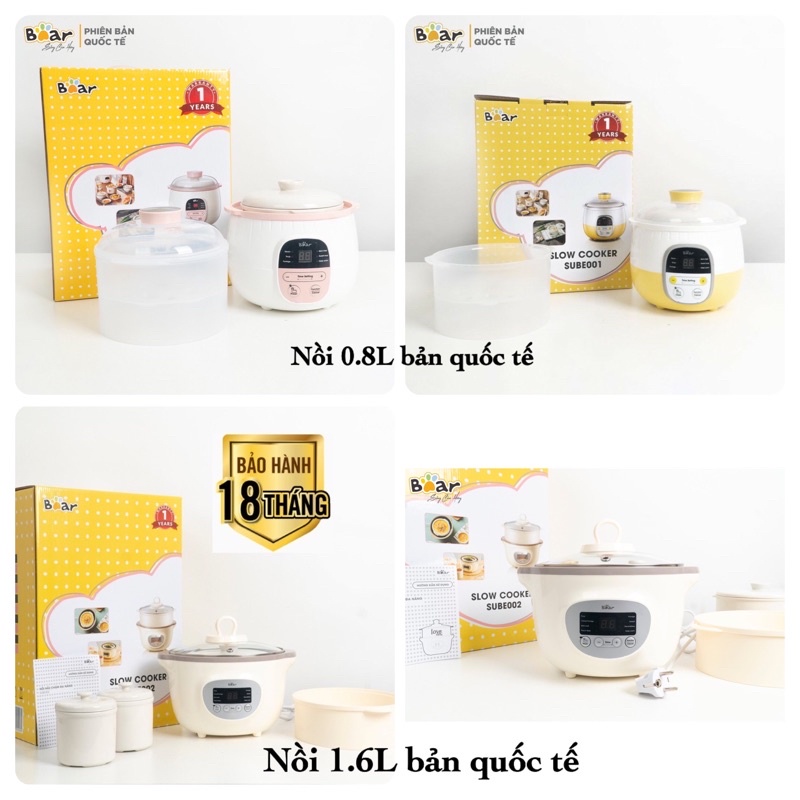 Giới thiệu [BẢN QUỐC TẾ - BẢO HÀNH 1 NĂM] NỒI HẦM CHÁO CÓ XỬNG HẤP CÁCH THUỶ 2IN1 BEAR 0,8L, 1.6L