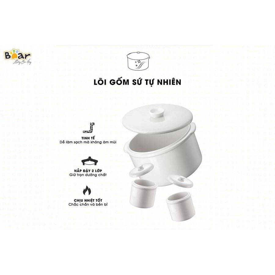 Thiết Bị Điện Gia Dụng > Đồ gia dụng nhà bếp > Nồi nấu chậm & Dụng cụ nấu chân không || [BẢN QUỐC TẾ freeship ] Trọn bộ Nồi nấu cháo chậm, ninh, hầm, hấp cách thủy BEAR VN 1l6, 3 thố 1 vỉ hấpCòn hàng