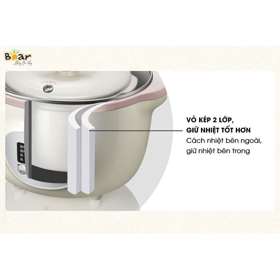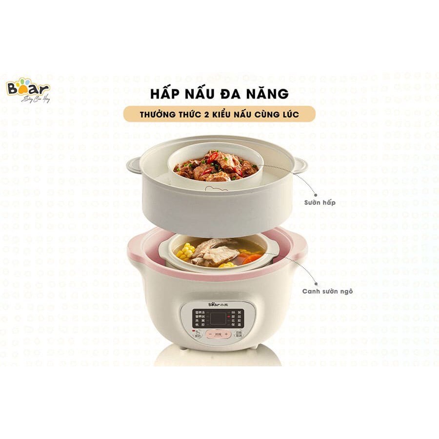 Giới thiệu [BẢN QUỐC TẾ freeship ] Trọn bộ Nồi nấu cháo chậm, ninh, hầm, hấp cách thủy BEAR VN 1l6, 3 thố 1 vỉ hấp