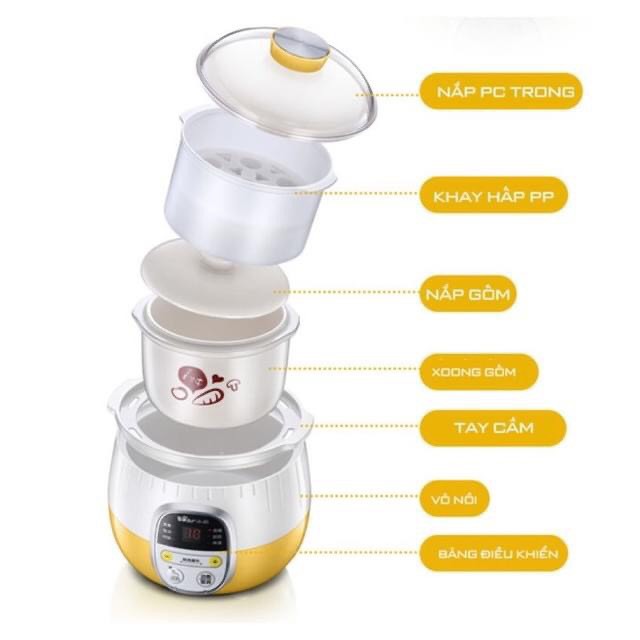 (BẢN QUỐC TẾ) Nồi nấu cháo Bear 0.8l có lồng hấp BH 12 tháng
