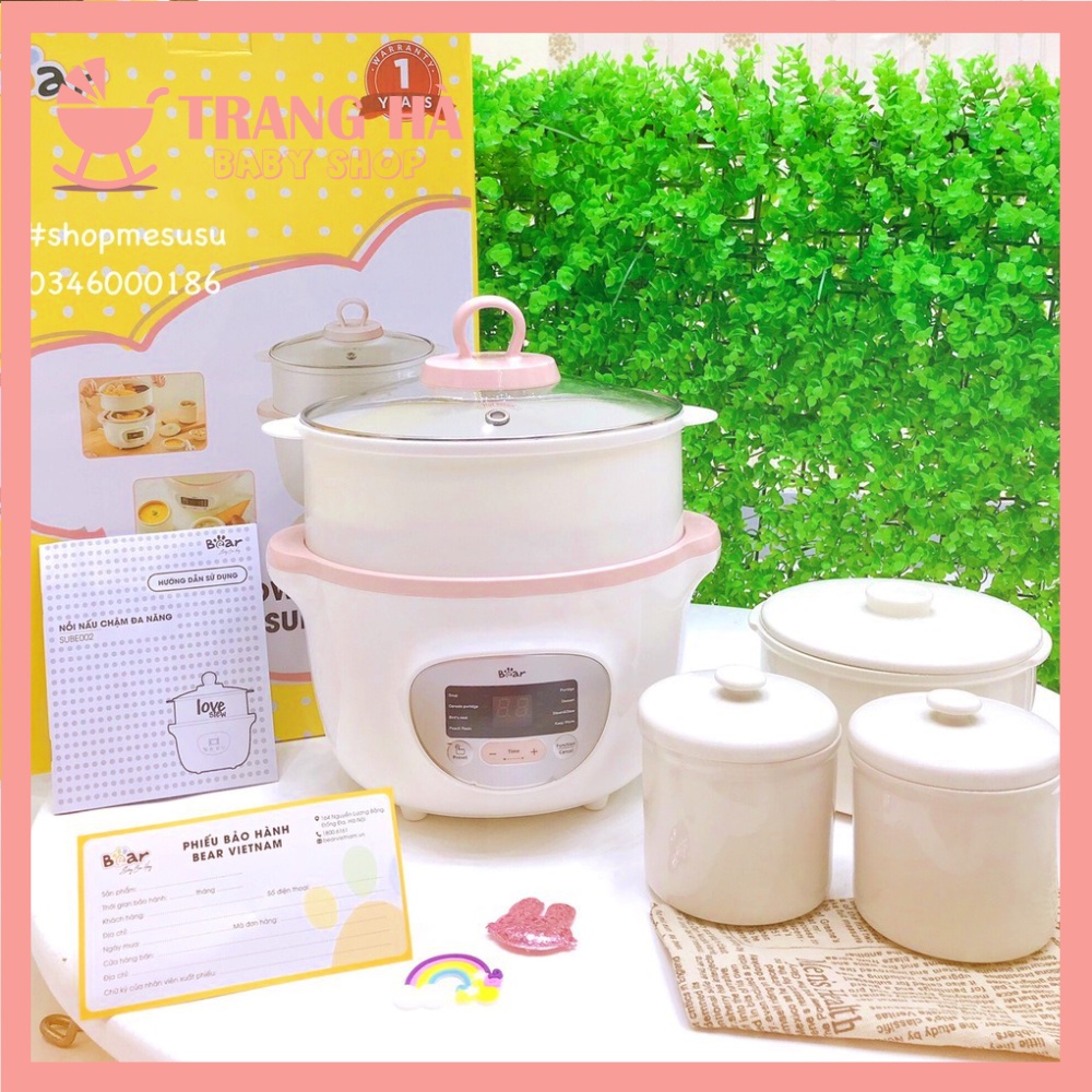 Nồi nấu chậm đa năng Bear 1.6l SUBE002 - BẢN QUỐC TẾ - Nấu cháo, Ninh, Hầm, Hấp - Bảo hành 18 thángSET 5 MÓN: Gồm 1 nồi, 1 thố to 1,6 Lít và 2 thố nhỏ 0,5 Lít, 1 Lồng hấp