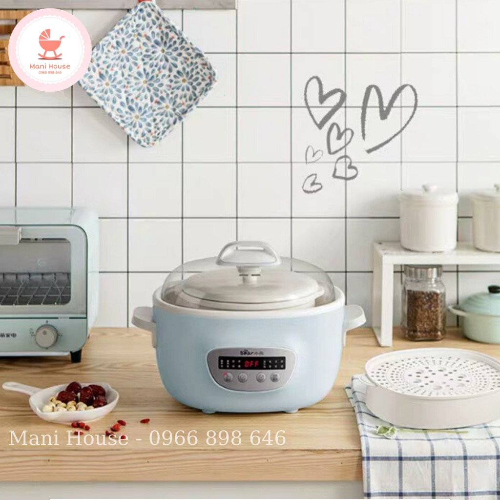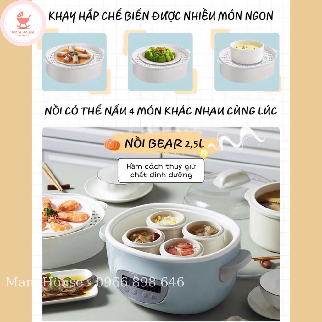 (BẢN QUỐC TẾ) Nồi nấu cháo chậm ăn dặm cho bé và gia đình Bear 2,5L kèm 4 thố nhỏ và lồng hấp