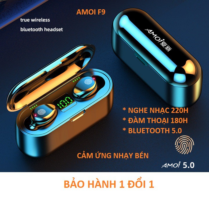 [BẢN QUỐC TẾ ]Tai nghe bluetooth true wireless AMOI F9 | Nút cảm ứng | Hiển thị % pin | Pin 280 kiêm Sạc dự phòng 2020