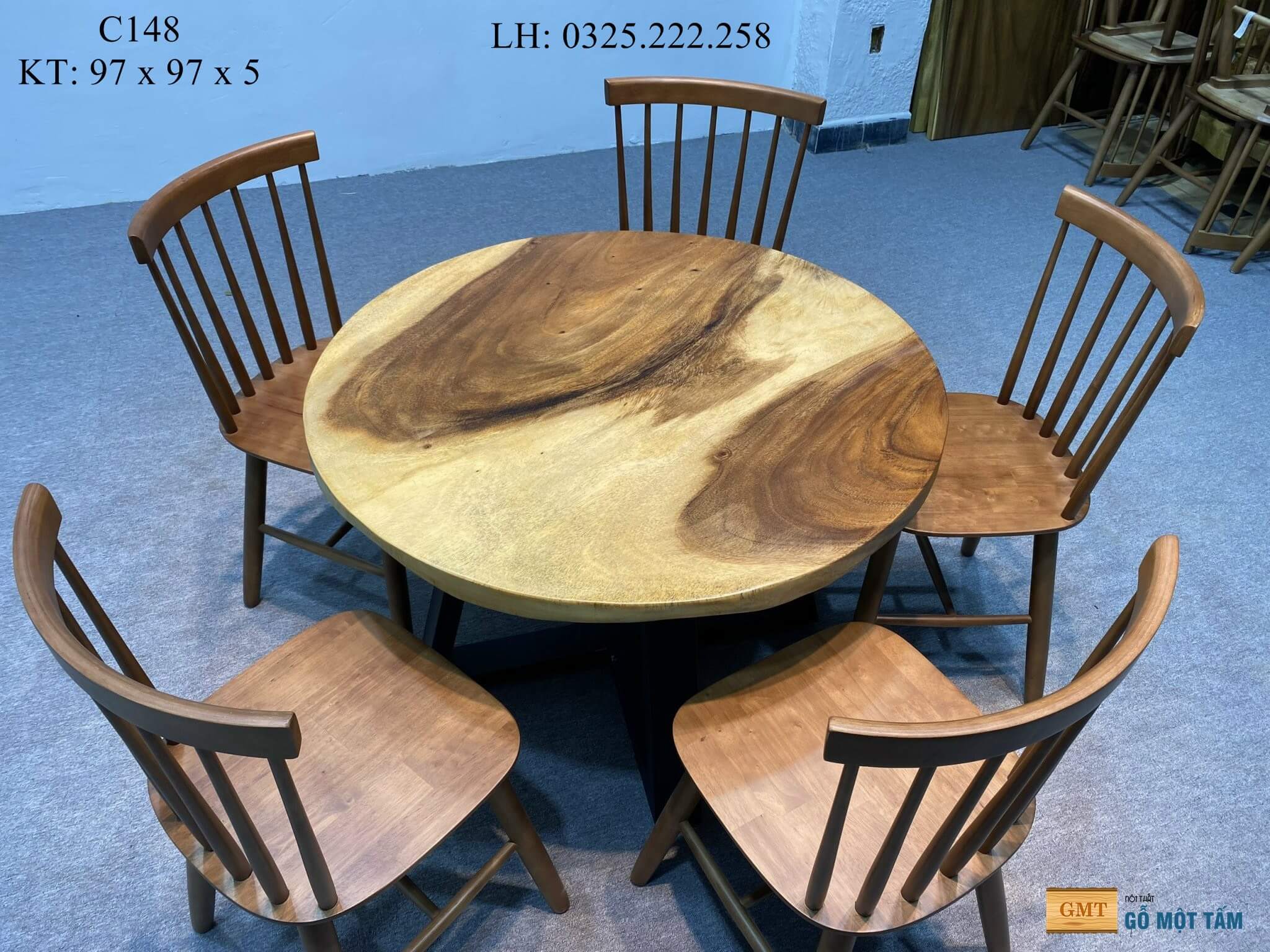 Bàn gỗ me tây nguyên tấm cạnh tròn.