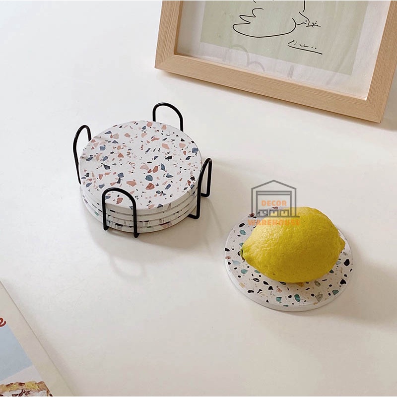 Giới thiệu [BÁN SỈ] Lót ly cốc hoạ tiết gạch men 10,5cm phong cách tối giản hiện đại, trang trí bàn ăn và bếp giá rẻ