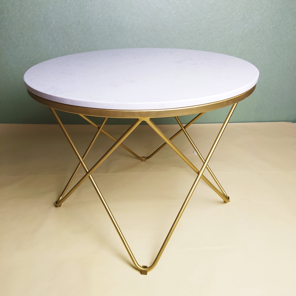 Bàn Sofa 4 chân chữ V thiết kế sang trong với mặt bàn bằng đá kết hợp với khung sắt tròn hình dáng 4 chữ V với viền ngoài uốn tròn sơn màu vàng đồng đẹp mắt và sang trọng, mẫu thiết kế dang được rất nhiều không gian lựa chọn phù hợp với tất cả các loại sofa có thể dùng làm bàn Cafe hoặc bàn sofa đều được.Chất liệu: Sắt sơn tĩnh điện, mặt đá hoặc kính cường lực 10mm