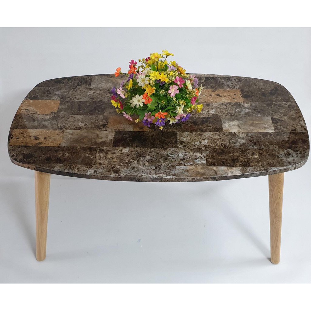 ✔️ Chất liệu là chân gỗ cao su tự nhiên kết hợp với mặt bàn giả đá tạo điểm nhấn sự khác biệt mới lạ, vân gỗ đẹp