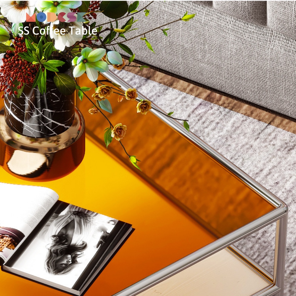 Giới thiệu Bàn sofa chữ nhật Modesk SS Coffee Table inox 304 – kính cường lực - Ván MFC [phòng khách - quán cafe]