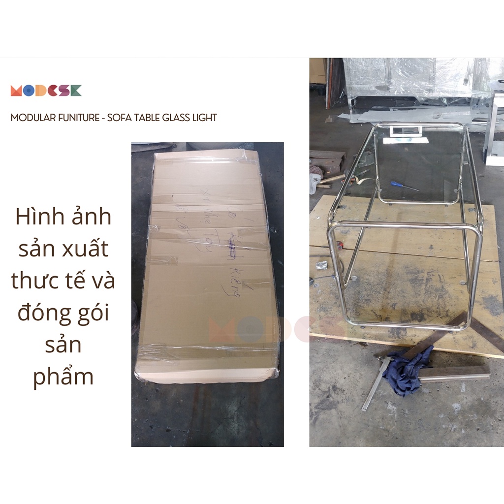 Giới thiệu Bàn Sofa, Kệ trang trí MODESK Table Sofa 3 Khung Inox 304 - Kính Cường Lực [phòng khách - quán cafe]