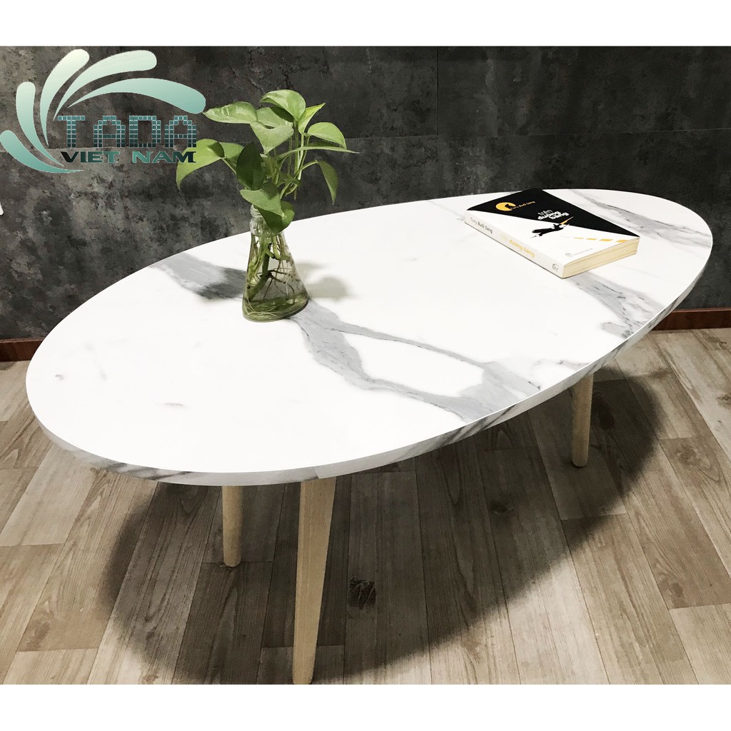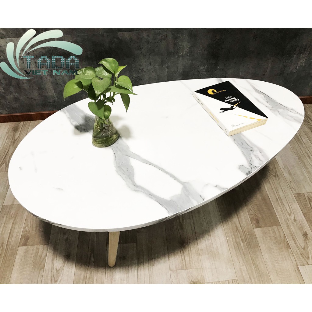 Nhà cửa & Đời sống > Nội thất > Bàn || Bàn sofa phòng khách mặt vân đá hình quả trứng với 3 chân gỗ tự nhiên sang trọng chắc chắn.Còn hàng
