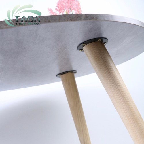 Bàn sofa phòng khách mặt vân đá hình quả trứng với 3 chân gỗ tự nhiên sang trọng chắc chắn.