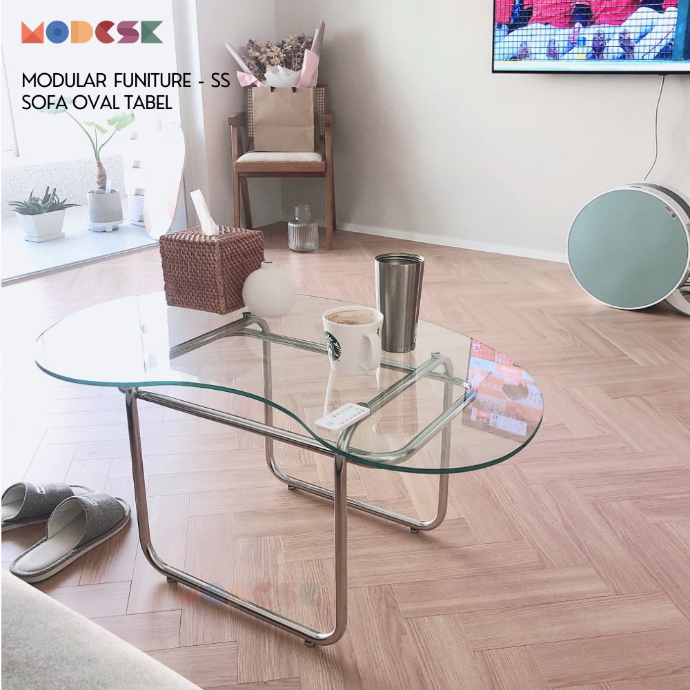 Giới thiệu Bàn Sofa - trà hình Oval MODESK SS Sofa Oval Tabel khung inox 304 - kính cường lực [phòng khách - quán cafe]