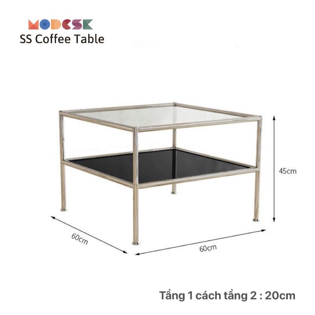 Giới thiệu Bàn sofa vuông - trà Modesk SS Coffee Table inox 304 – kính cường - ván MFC [phòng khách - quán cafe]