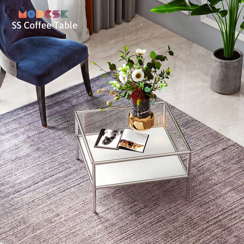 Bàn sofa vuông - trà Modesk SS Coffee Table inox 304 – kính cường - ván MFC [phòng khách - quán cafe]