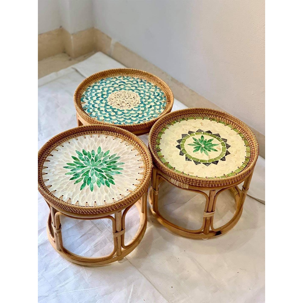 Bàn song mây tròn kem khay vintageBàn cao 41cm