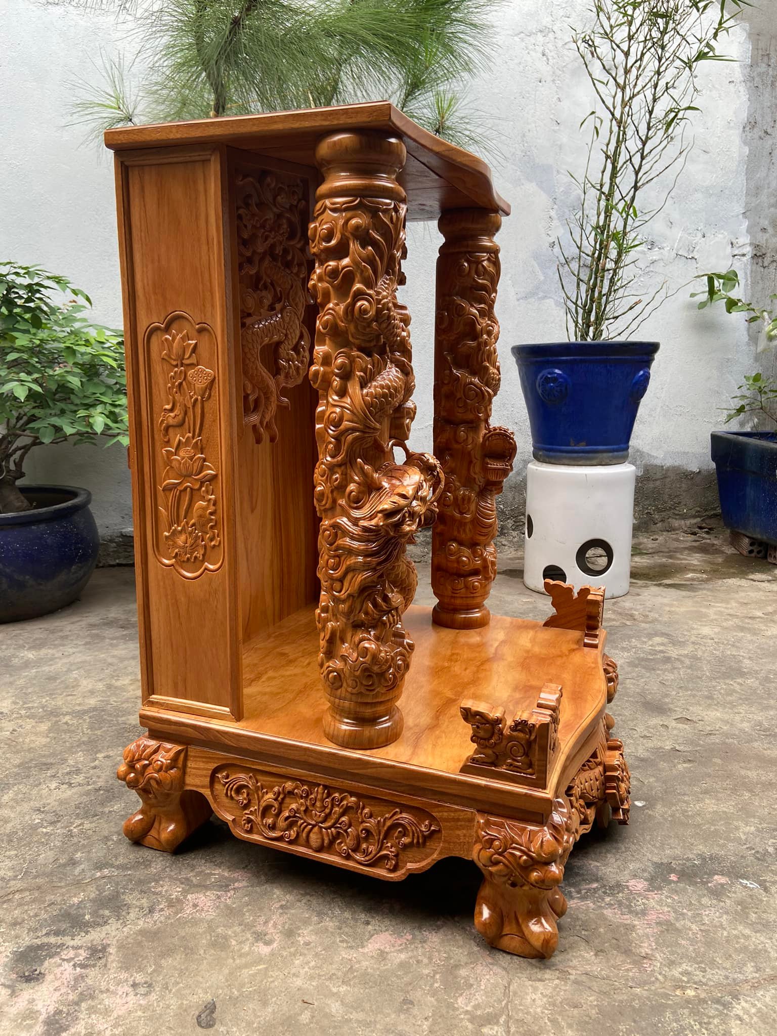 Bàn thờ thần tài ông địa mẫu Rồng Mây cao cấp 68 x 68 x 107cm - Gỗ gõ đỏ